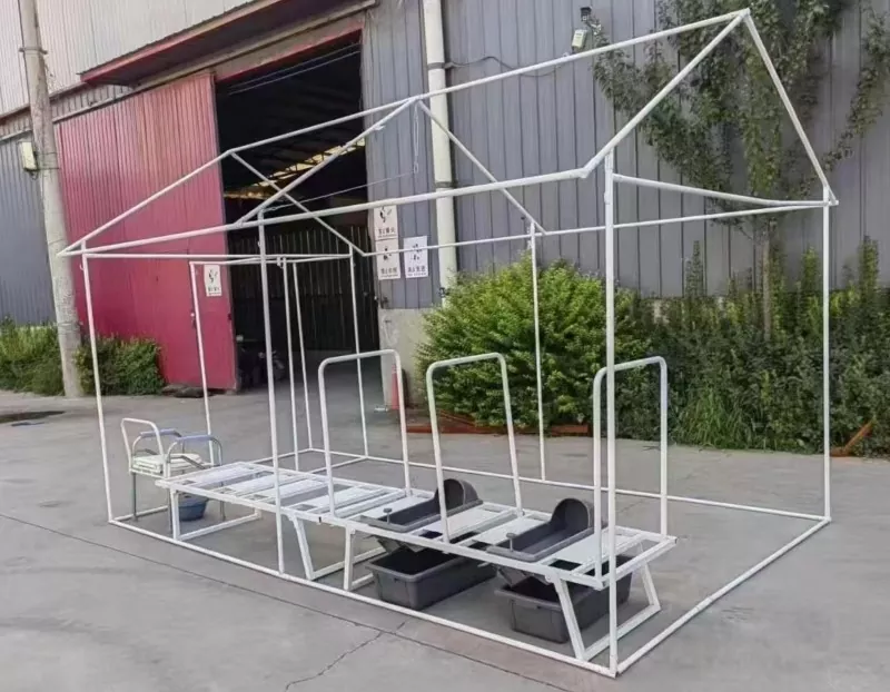 เต็นท์ห้องน้ำบรรเทาภัยพิบัติฉุกเฉินมีโครงสร้างผนังแนวตั้งลาดเอียงสองชั้น โครงเหล็กผ่านการบำบัดป้องกันสนิม หลังคาใช้วัสดุกันน้ำและหน่วงไฟ และเครื่องสุขภัณฑ์ทำจากวัสดุที่มีความแข็งแรงสูงด้วยขนาดที่แม่นยำซึ่งมั่นใจได้ด้วยการขึ้นรูปแม่พิมพ์ ระบบไฟเซ็นเซอร์ผ่านการทดสอบกันน้ำและกันกระแทก เหมาะสำหรับการใช้งานกลางแจ้ง เต็นท์ใช้แนวคิดการออกแบบแบบโมดูลาร์ช่วยให้ประกอบและถอดชิ้นส่วนได้อย่างรวดเร็ว การเชื่อมต่อโครงเหล็กใช้ข้อต่อแบบ snap-on ช่วยให้ติดตั้งโดยไม่ต้องใช้เครื่องมือ ระบบระบายอากาศใช้การออกแบบการพาความร้อนพร้อมตะแกรงป้องกันแมลงเพื่อรักษาการไหลเวียนของอากาศภายใน